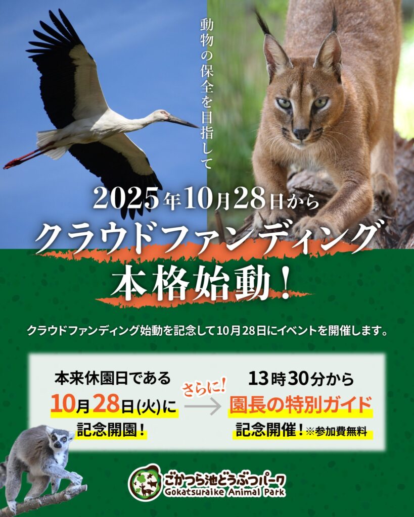 この度、ごかつら池どうぶつパークは10月28日(火)よりクラウドファンディングを実施することになりました。
