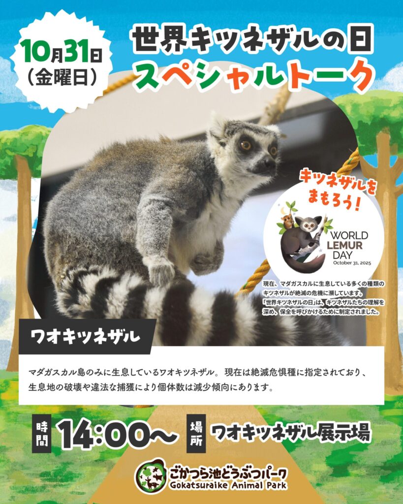 「世界キツネザルの日」にちなみ、ワオキツネザル担当の飼育員がスペシャルトークを開催いたします。