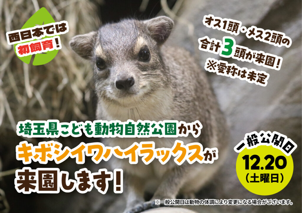 この度、埼玉県こども動物自然公園からキボシイワハイラックス3頭、