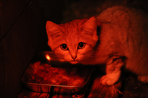 本日12月15(月)の13時ごろ、神戸どうぶつ王国から当パークへマヌルネコ「メイ」とスナネコ「ジウ」が来園しました。