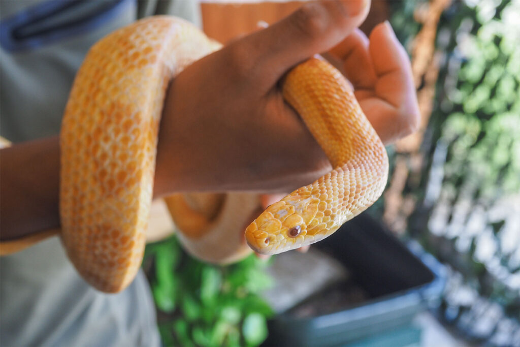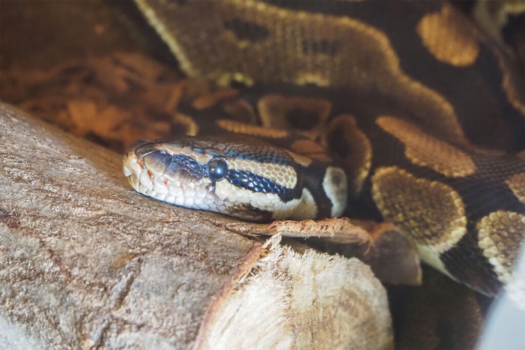 上唇に穴が開いており、これは「ピット器官」と呼ばれる器官。熱を感知することができ、暗闇でも獲物を探すことができる。